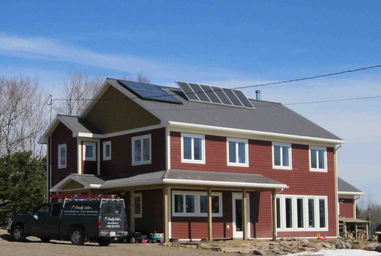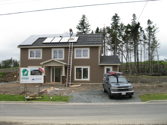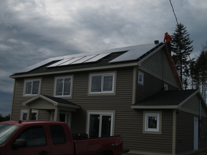 Below is a picture of the Efficiency Nova-Scotia's Eco Home grid tie power system. This system is 4.7kW capacity and it will off-set approximately 100% of the home's energy use.
